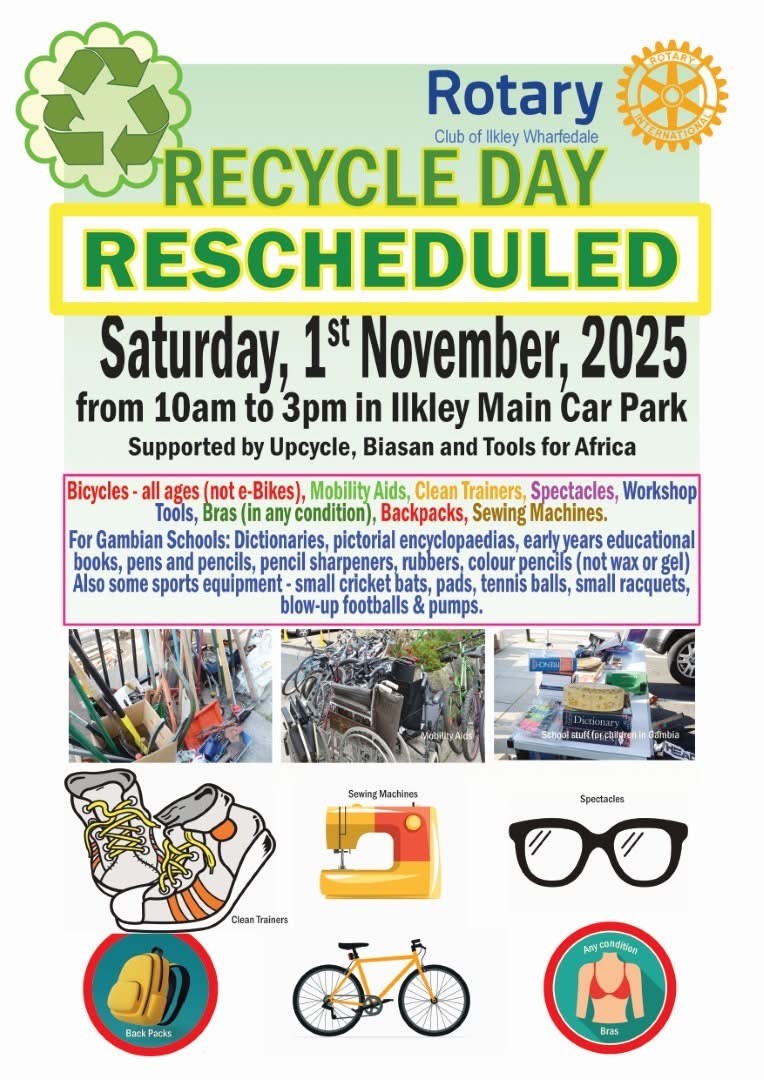 Ilkley Rotary have an annual collection on the 1st Saturday in October in the main Ilkley car park |